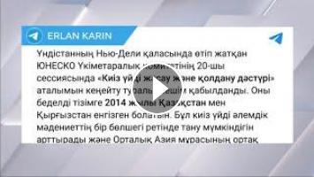 Үндістанның Нью-Дели қаласында өтіп жатқан ЮНЕСКО Үкіметаралық комитетінің 20-сессиясында «Киіз үйді жасау және қолдану дәстүрі» аталымын кеңейту туралы шешім қабылданды.